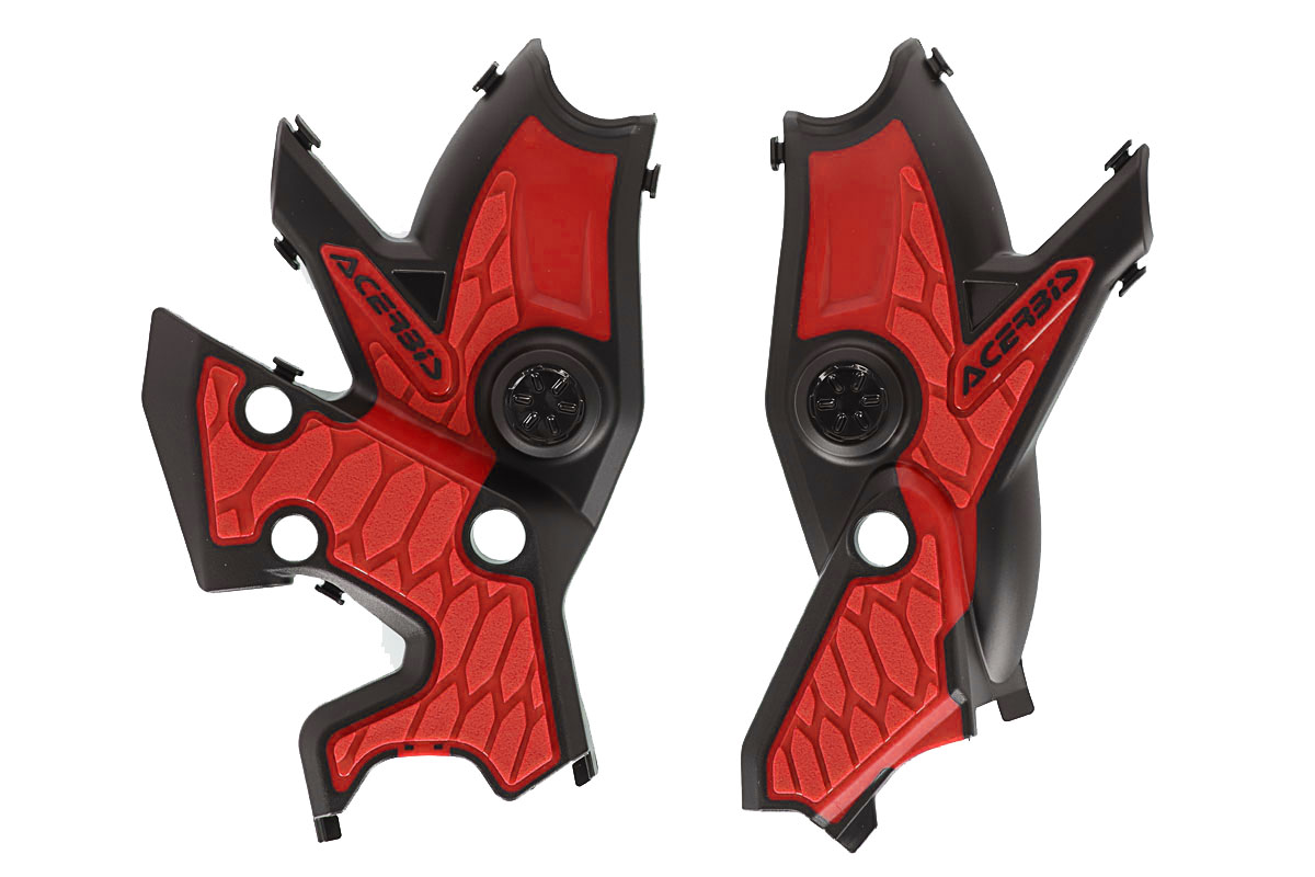The frame parts above the footrests are quickly damaged by dirt and sand, especially in off-road use. The boots virtually grind the paint off the frame with the help of dust and sand. The swingarm bearings holes are also open and unprotected in the frame. Dirt can quickly accumulate here. The Acerbis frame protectors cover the swingarm bearing openings and also protect the frame from abrasion by the boots.