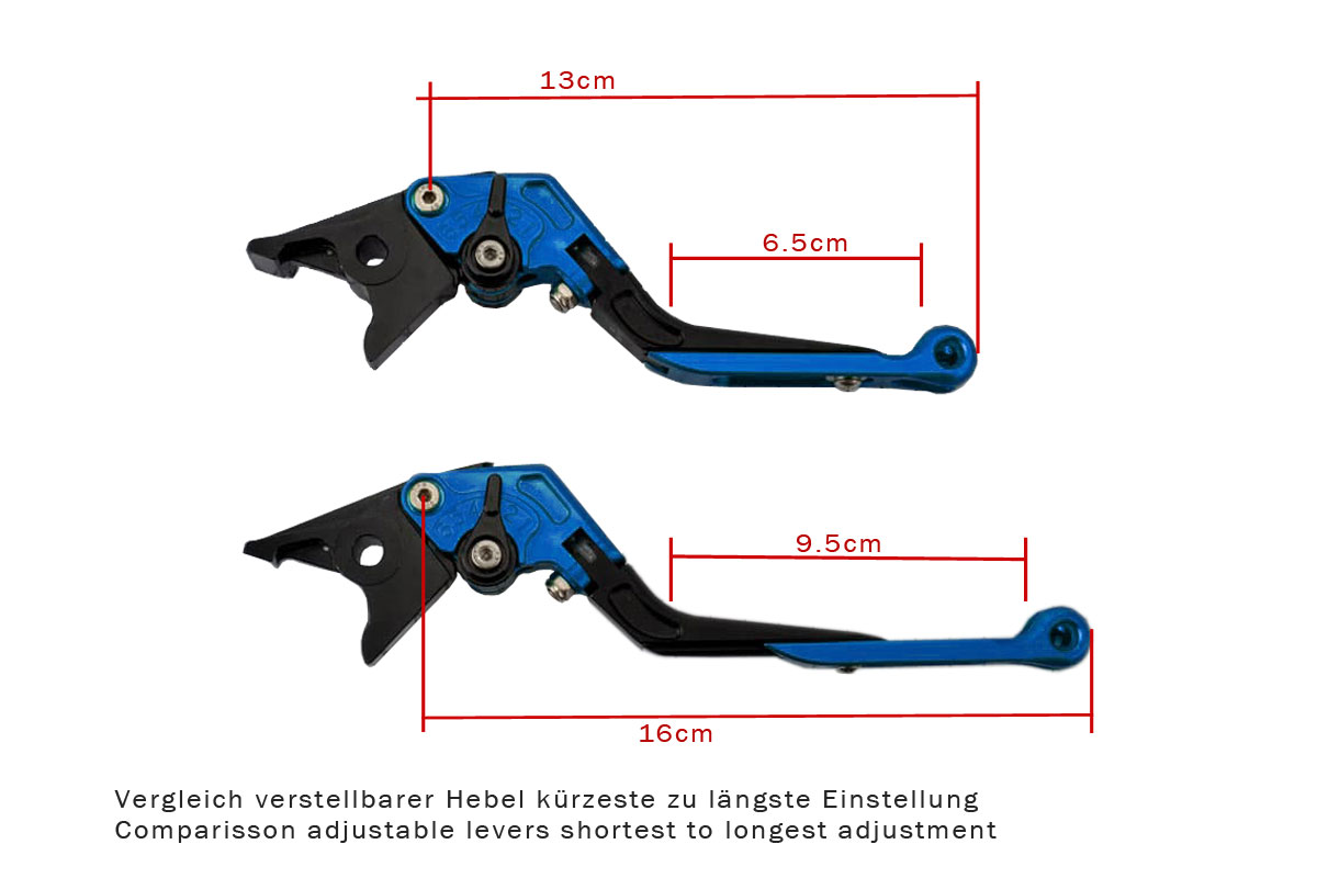 With the almost infinite number of different colour combinations, you can configure your own desired levers and make your Tenere truly unique. Due to the many different variants, the lever sets are always assembled individually after ordering - so please allow 2-3 days till shipping.