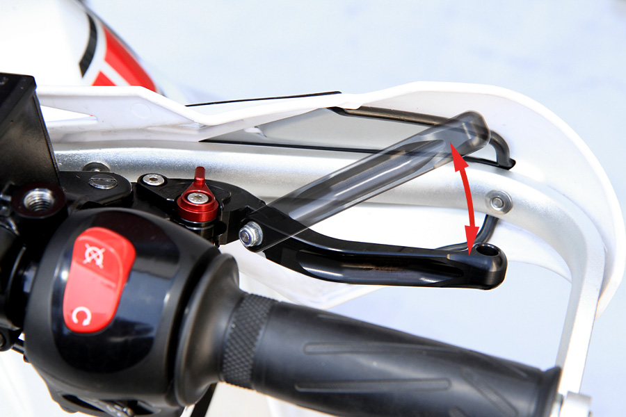 Simple item, but it changes the look of your bike totally. The levers have a small inset 1-1/4 inches from the end of the lever to provide a break-away point in a garage tip-over or otherwise. Position of the lever adjustable in 6 positions, length adjustable. Comes as a foldable lever.
