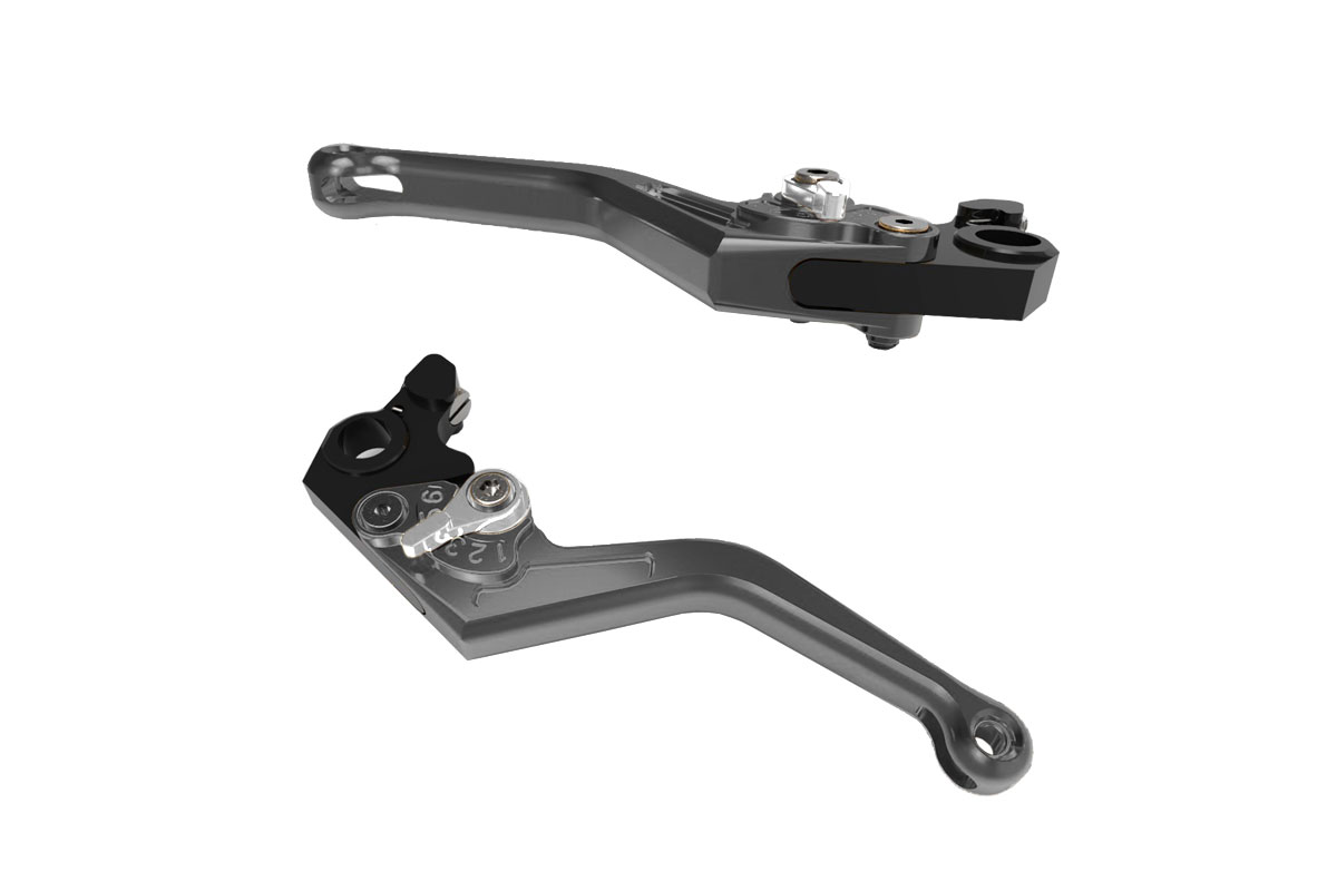 Our Clutch and Brake Lever are CNC Machined of 6061-T6 billet aluminum to precise tolerances. Each lever made from 7 cnc machined parts. The Clutch and brake levers are fully adjustable in width and come in a short version to avoid a damage when falling down.