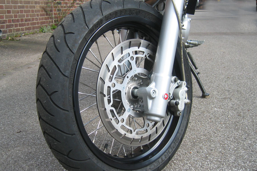 This brake kit is a must for super motord use. Even the stock TTR with 21" front wheel benefits from the much better brake power. Change to a 4 piston brake caliper on request.