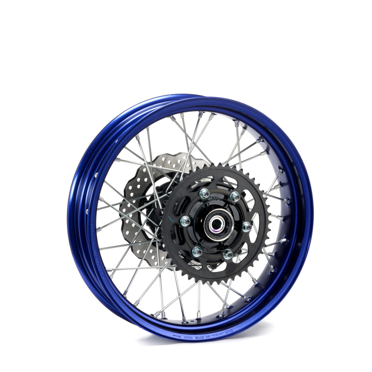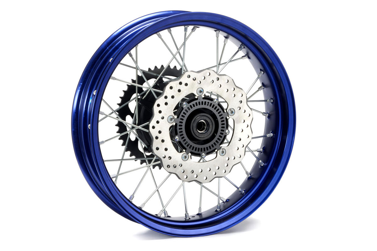 Ready-to-fit complete rear wheel with D.I.D rim for the Yamaha Tenere 700, blue rim