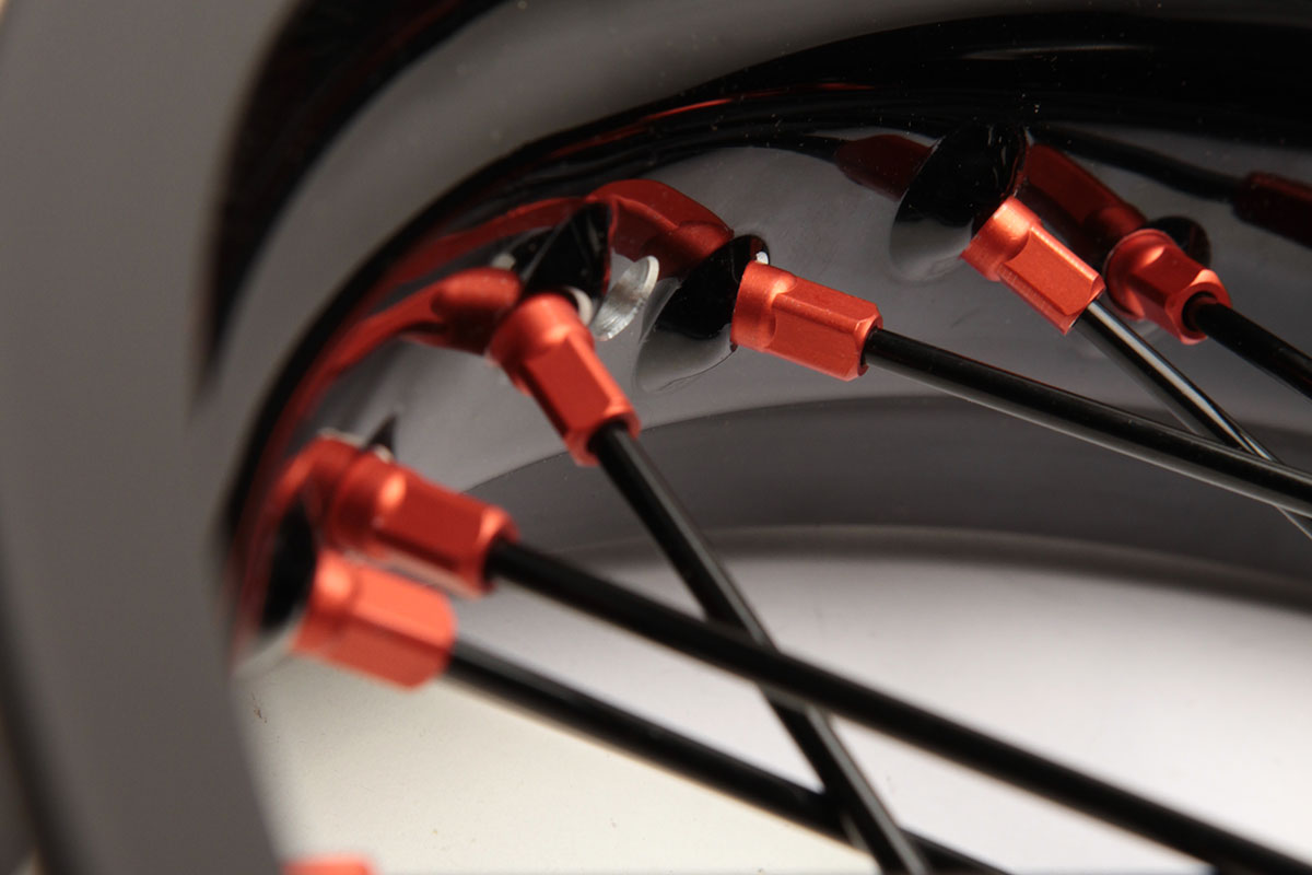 - reinforced stainless steel spokes, aluminum spoke nuts / nipples.