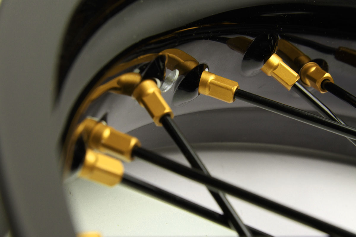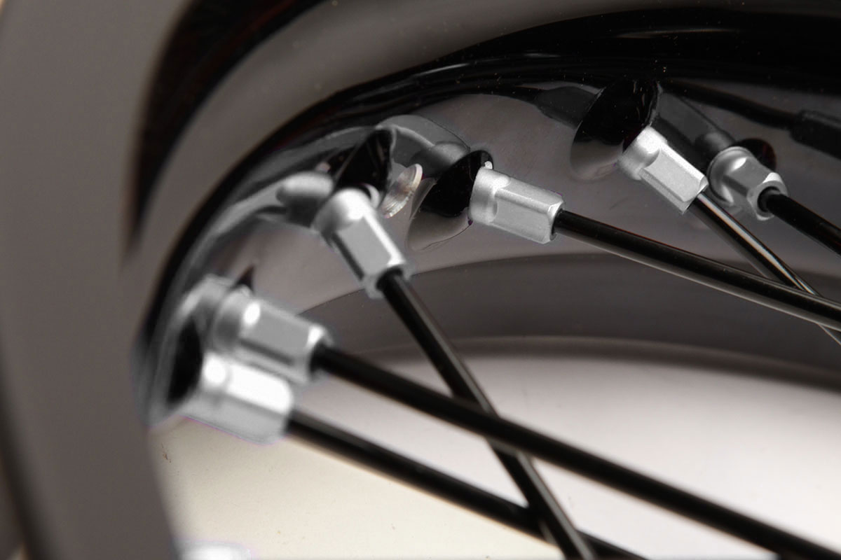 On long distance travels you often find the most weak point of many original Yamaha wheels - the rim! Our EXCEL rims with the reinforced stainless spokes will solve this problem for sure! The rims are manufactured with profiles made of aluminium of the 7000 series. The manufacturing process is supported by highly automated production lines and allows for the most extreme strain of sports driving. Made to the highest specifications, Excel rims have been a guarantee of the ultimate in quality for many years. "EXCEL" stands for the new scales concerning hardness, solidity, corrosion resistence, and surface quality.