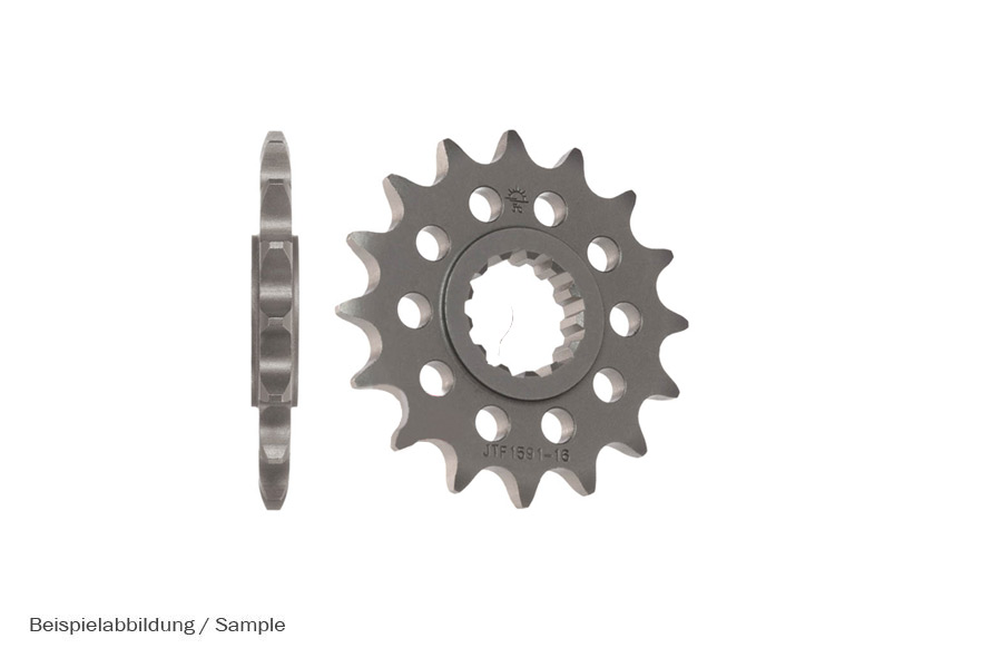 The steel used for this front sprockets meet the highest demands and thus meet OEM quality. High tensile strength of the material guarantees a long service life. The special machining process - Diamond Cut - is an innovative production process that achieves a significantly higher quality standard than the conventional milled chain wheel. Precision tools produce an optimized cutting pattern. At the same time, the pinion is highly hardened in the tooth flank area. Only the highest quality steels are used in order to guarantee consistently high quality to industry standards. The pinions are machined exclusively on CNC lathes. The diamond cut toothing and case hardening of 700 HV 40 at a case depth of 0.4 mm meet the highest quality standards. Thanks to modern broaching machines, our pinions guarantee an exact fit on the drive shaft with a radial and axial runout tolerance of less than 0.1mm.
