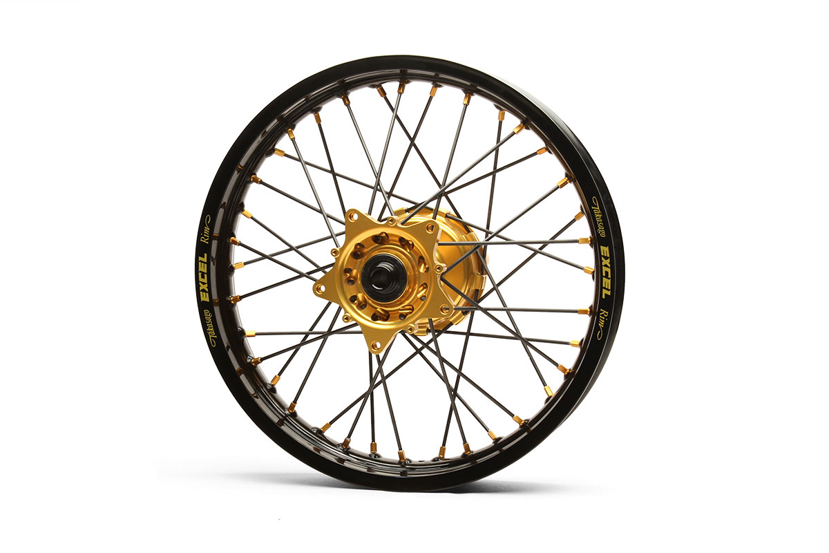 Complete front wheel with 1.85x21 Excel rim and machine milled HAAN aluminium hub for Yamaha Tenere 700 Front wheel in 21x1.85 inch size like the oem wheel. This wheel can be used with a tube only. For a tubeless wheel check the 21x2.15 wheel with tubeless option. High quality wheel with high grade Excel aluminium rim and cnc machined, ultra strong aluminium hub. We deliver a complete new, ready-to-mount wheel including new cnc machined aluminium hub, Excel rim and reinforced stainless steel spokes! All needed seals and bearings are included. Direct fit, no changes necessary. Brake discs and ABS sensor ring has to be taken from the oem hub. You can also but this ass spare parts, see accessoroes tab. The HAAN hubs are 100% made in the Netherlands. The hubs are made from 1 piece billet 6082 T6 alloy on the newest CNC machines. Hubs are anodized and available in various colours. Weight complete front wheel: 4.2 Kg Facts: Hubs are CNC machined billet 6082 T6 alloy Original brake disc and sprocket can be mounted on the hubs Hubs are fitted with Koyo bearing, no special sizes but easy available bearings worldwide The hubs have 36 spokes Stainless steel spokes, black or silver Aluminium nipples Center tube and spacer are made of 7075 hard alloy Hubs are delivered with all mounting hardware and brake disc bolts No brake rotors, ABS sensor rings and ABS sensor ring bolts included, use the OEM ones or check the accessories tab Avaiable as tube type wheels or as a tubeless version. For tubeless see 2.15 inch width wheel Hub colours: black, silver, gold, yellow, red, titanium, magnesium and blue. Green or orange colour on request Excel rim colours: black, silver, gold or blue anodised Spokes: stainless steel, silver or black coated Nipples: aluminium made, black, silver, blue, gold, green or red anodised Due to the wide range of possible combinations, the wheels are always made to order for each customer.The delivery time for these individually manufactured wheel sets is usually around 8-14 working days, depending on the season. Fits for all: Yamaha Tenere 700 2025 onwards Yamaha Tenere 700 Rally 2025 onwards Yamaha Tenere 700 2019 - 2024 Yamaha Tenere 700 Rally Edition 2020 - 2024 Yamaha Tenere 700 World Raid 2022 onwards Yamaha Tenere 700 World Rally 2023 onwards Yamaha Tenere 700 Extreme 2023 - 2024 Yamaha Tenere 700 Explore 2023 - 2024