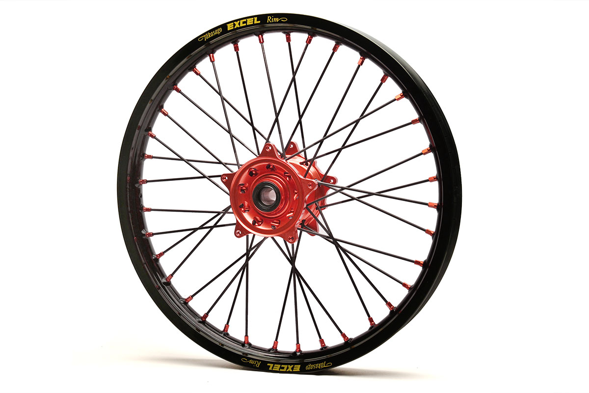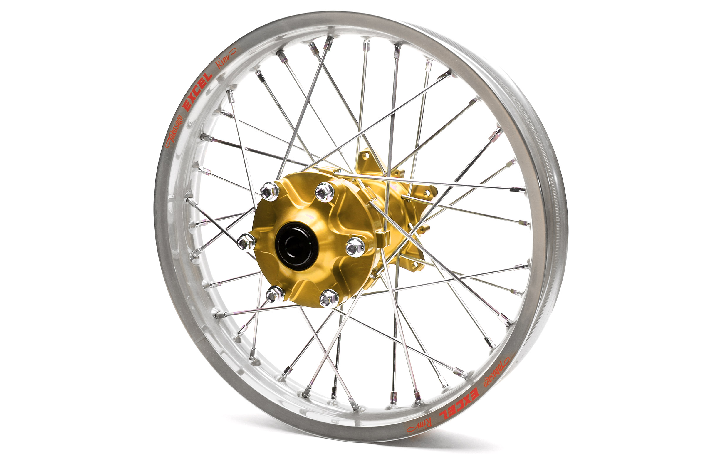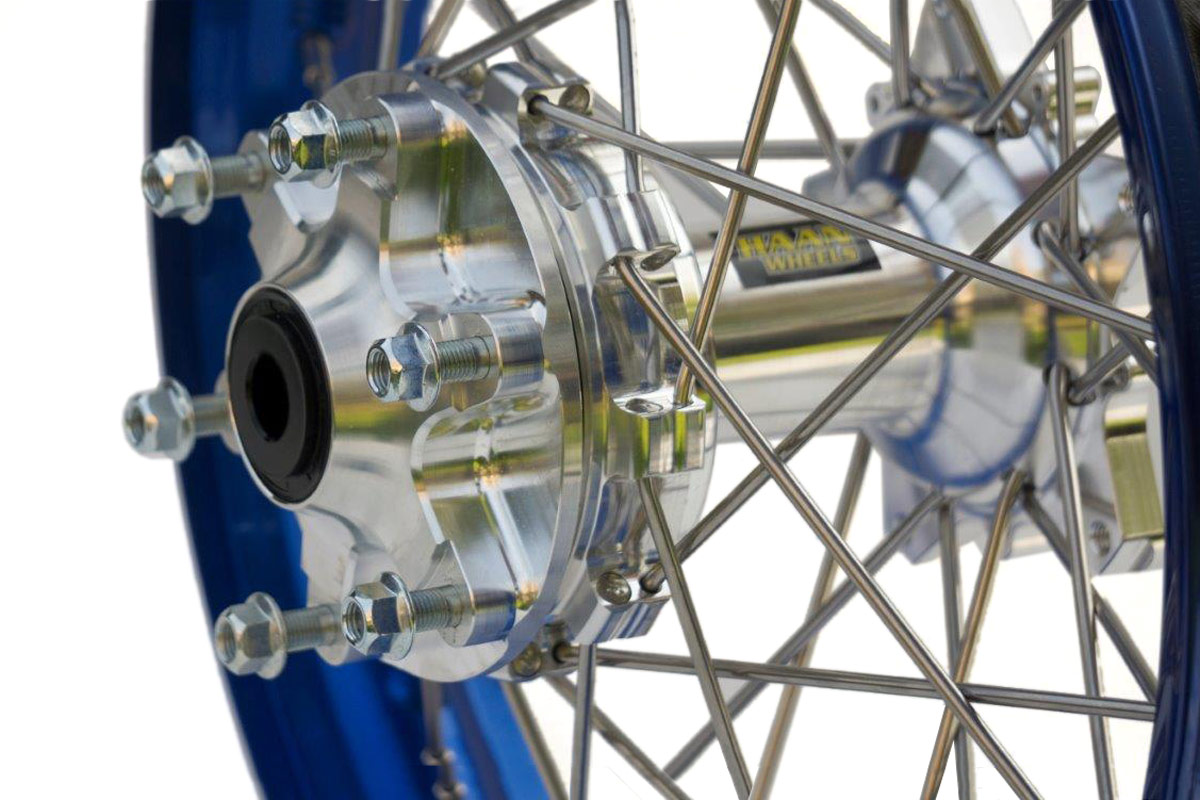 Complete front wheel with 1.85x21 Excel rim and machine milled HAAN aluminium hub for Yamaha Tenere 700 Front wheel in 21x1.85 inch size like the oem wheel. This wheel can be used with a tube only. For a tubeless wheel check the 21x2.15 wheel with tubeless option. High quality wheel with high grade Excel aluminium rim and cnc machined, ultra strong aluminium hub. We deliver a complete new, ready-to-mount wheel including new cnc machined aluminium hub, Excel rim and reinforced stainless steel spokes! All needed seals and bearings are included. Direct fit, no changes necessary. Brake discs and ABS sensor ring has to be taken from the oem hub. You can also but this ass spare parts, see accessoroes tab. The HAAN hubs are 100% made in the Netherlands. The hubs are made from 1 piece billet 6082 T6 alloy on the newest CNC machines. Hubs are anodized and available in various colours. Weight complete front wheel: 4.2 Kg Facts: Hubs are CNC machined billet 6082 T6 alloy Original brake disc and sprocket can be mounted on the hubs Hubs are fitted with Koyo bearing, no special sizes but easy available bearings worldwide The hubs have 36 spokes Stainless steel spokes, black or silver Aluminium nipples Center tube and spacer are made of 7075 hard alloy Hubs are delivered with all mounting hardware and brake disc bolts No brake rotors, ABS sensor rings and ABS sensor ring bolts included, use the OEM ones or check the accessories tab Avaiable as tube type wheels or as a tubeless version. For tubeless see 2.15 inch width wheel Hub colours: black, silver, gold, yellow, red, titanium, magnesium and blue. Green or orange colour on request Excel rim colours: black, silver, gold or blue anodised Spokes: stainless steel, silver or black coated Nipples: aluminium made, black, silver, blue, gold, green or red anodised Due to the wide range of possible combinations, the wheels are always made to order for each customer.The delivery time for these individually manufactured wheel sets is usually around 8-14 working days, depending on the season. Fits for all: Yamaha Tenere 700 2025 onwards Yamaha Tenere 700 Rally 2025 onwards Yamaha Tenere 700 2019 - 2024 Yamaha Tenere 700 Rally Edition 2020 - 2024 Yamaha Tenere 700 World Raid 2022 onwards Yamaha Tenere 700 World Rally 2023 onwards Yamaha Tenere 700 Extreme 2023 - 2024 Yamaha Tenere 700 Explore 2023 - 2024