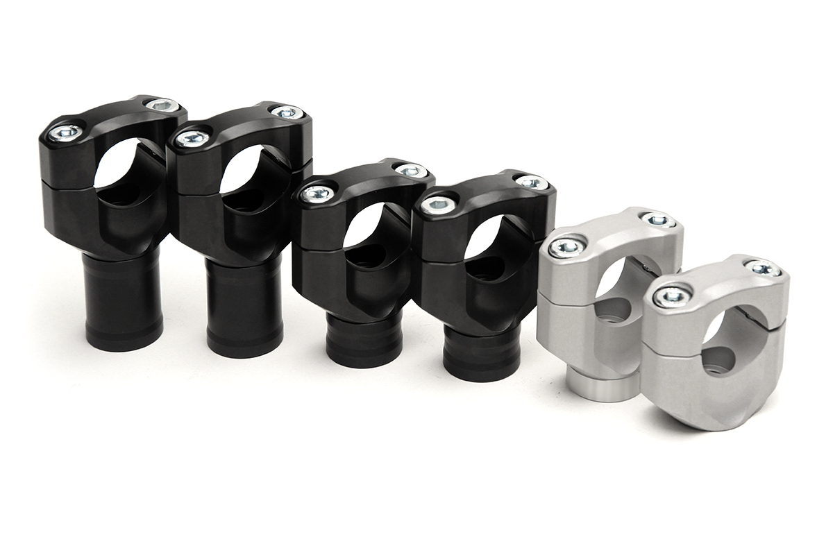 The fully cnc machined clamping sets have a height of 20mm (bottom of clamp to lower side of handlebar). By using the avaiable distance bushings almost all needed heights are possible.
