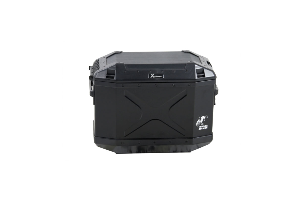 HEPCO-Becker Xplorer Topcase in silver anodised Extremely endurable combination of anodised aluminium sheet and coloured shock-resistant artificial material. New, modern, actual design, many fastening possibilities for luggage straps, top loading concept. No black aluminium abrasion on your luggage anymore due to the high resistant anodised coating. Top cover fully removable. Avaiable with 45 liters capacity. Extremely endurable combination of anodised aluminium sheet and coloured shock-resistant artificial material. New, modern design, many fastening possibilities for luggage straps. The top cover is fully removable thanks to the Top-Load system. No black aluminium abrasion on your luggage anymore due to the high resistant anodised coating. · Extremely endurable combination of anodised aluminium sheet and coloured shock-resistant artificial material · Made of anodised 1,5mm strong Aluminium and highly resistable plastic edges · new, modern, actual design · Anodised silver aluminium - no aluminium abrasion · rounded edges, included luggage hooks · strong metal locks, integrated graps · may absorb any shock · locks have a cylinder locking mechanism · many fastening possibilities for luggage straps · top loading concept · 100% water resistance · same closing system for all locks on request · possible with a quick-release lock · special accessories available · 45 liter capacity · MOTORRAD magazin : Highly recommended!