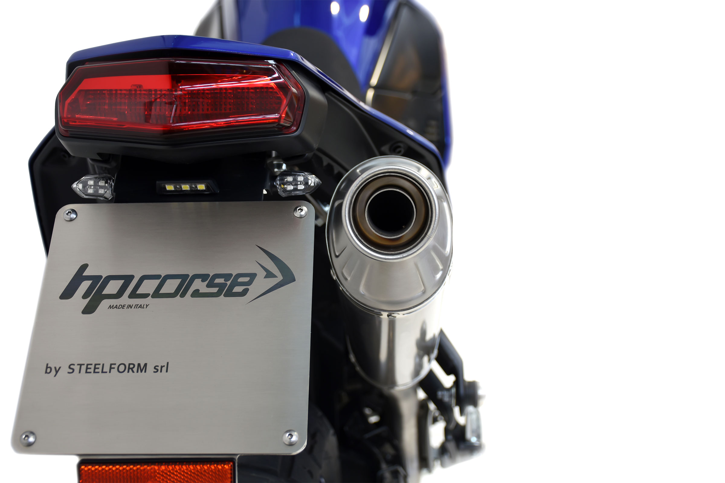 Tail tidy kit with free adjustable number plate holder for the Yamaha Tenere 700 The adjustable angle of inclination and the adjustable indicator holders allow a variety of mounting options. The original number plate / indicator holder is equipped with a splash guard or number plate holder that extends far downwards. This not only looks unsightly but also tends to break off in off-road use. No sawing, bending, drilling on the original parts while installing out tail tidy kit- everything is supplied ready for installation. The filigree holder in high-quality aluminium-steel combination with black powder-coated or anodised finish has been specially developed for the Tenere 700, is robust, weather-resistant and will withstand harshest conditions. The indicator adapters can be adjusted in width (175-210 mm) and fixed in three positions. The angle of inclination is continuously adjustable via slotted holes. Number plate holder made of laser-cut and CNC-bent aluminium. All parts are black plastic-coated or with black anodised finish for long-lasting surface quality. Delivery includes high-quality LED number plate lighting with elegant and clean cable routing and indicator adapters for aftermarket turn signals with M8 thread. Alternatively OEM Yamaha turn signals adapters (oval shaped opening) can be found in the accessories below. The Tenere 700 benefits immensely visually from this sporty rear end. It makes the motorbike as a whole appear much lighter and sportier. Details: Adjustable licence plate holder made of laser-cut aluminium and steel. Adjustable indicator position Width of licence plate area: 180 mm Incl. licence plate holder and licence plate light Material: aluminium, powder-coated Licence plate light - E-approved No original parts have to be changed or destroyed! Rebuilding to the original parts is possible at any time. Compatible with the high HP Corse and MIVV Rallye silencer. Come swith adapters for aftermarket turn signals with M8 / M10 thread. Shown Indicators / Reflector / Reflector and bracket not included - please order separately if required. See accessories for the World Raid Model the seperate sold OEM indicator adapters are needed - see accessories Fits for all : Yamaha Tenere 700 2019 onwards Yamaha Tenere 700 Rally 2020 - 2022