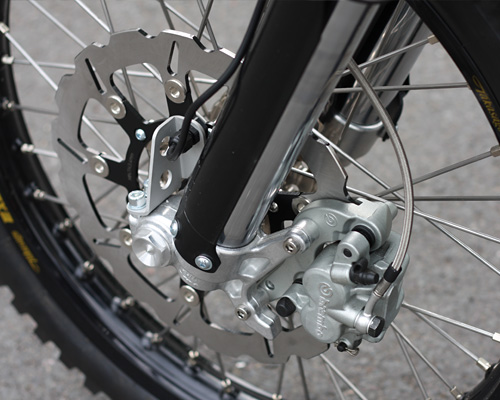 Due to the lot of different set-up possibilties we will get in contact with you after the order to discuss the setting. The front fork kit can only be used in combination with a new front wheel with a single 298 mm brake disc.