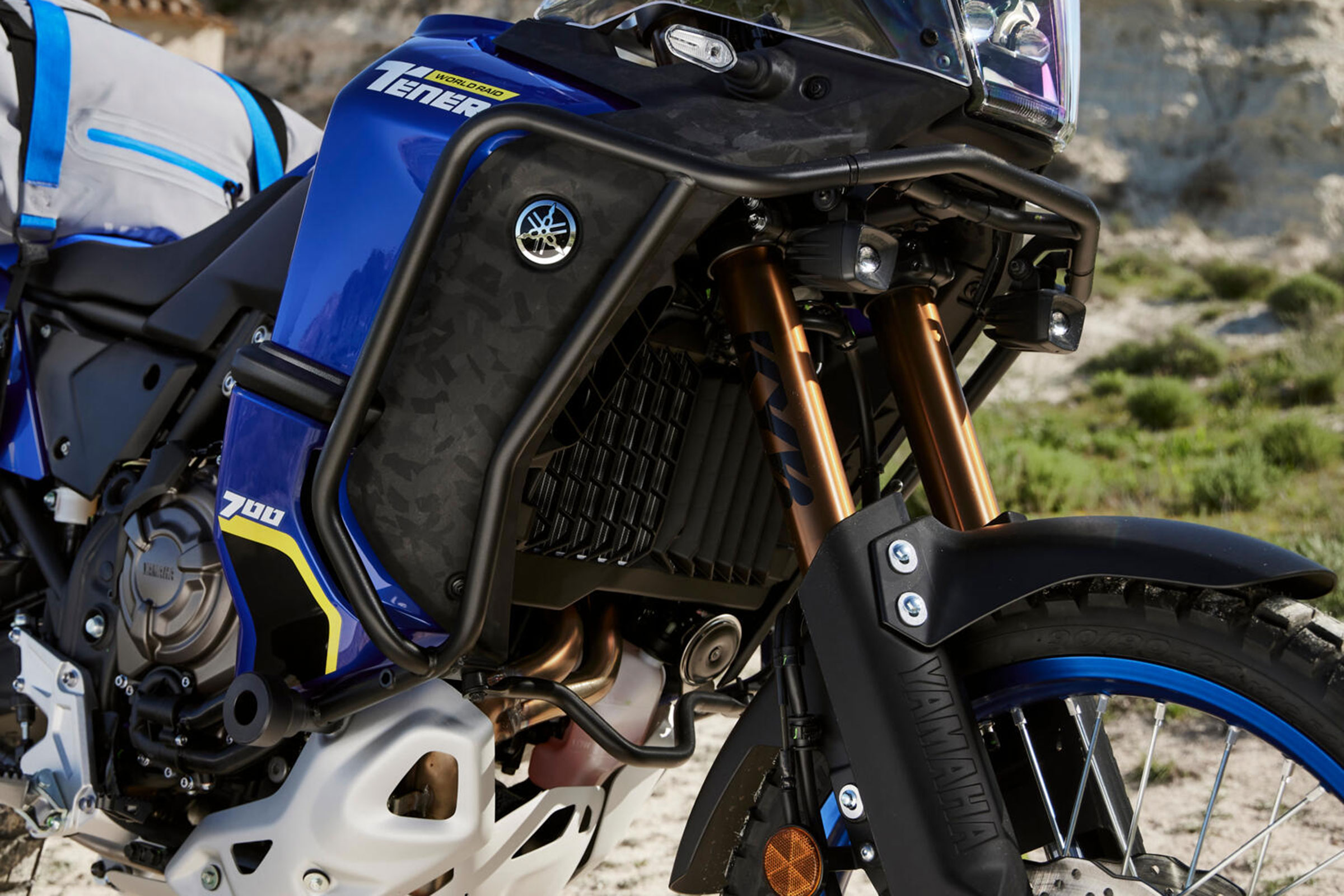 Strong crash bars for the Yamaha Tenere 700 World Raid and World Rally models.