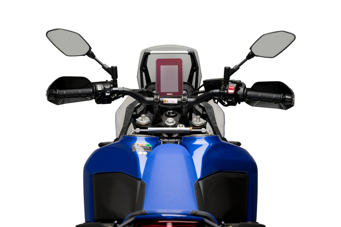 PUIG M.E.M. Screen Height Adjustment System Tenere 700 This manual system allows you to increase and decrease your screen height whilst on the move perfect for all riding conditions. Easy, safe and quick addusting of the sreen height from -20 mm to +100 mm compared to OEM screen position. The system improves the performance of the Tenere and provides an aerodynamic protection adaptable to each moment and situation of your driving thanks to the manual elevation mechanism for your screen (M.E.M.). It is a compact mechanism that allows you to modify the position of the screen of your Tenere in seconds without need of tools. You can raise and increase the aerodinamic protection on fast roads or adverse weather conditions, and you can also decrease it in the city or when driving offroad for a wide field view without interference, or for a sport look. You can use the mechanism and place the screen in the position you want with a quick and easy twist on the fixings, and fix it again with just your hands, without the need of tools. The mechanism works for your OEM screen or for Puig screens for your motorcycle. Designed and manufactured in Barcelona with the most care to detail to offer you an exclusive product that completes your motorcycle and provides the best features, its supports are resistant as well as light and discreet. It is delivered with detailed step-by-step instructions, so you can install the product quickly and easily without the need for mechanical knowledge. Designed and manufactured with the utmost care to detail to offer you an exclusive product that completes your motorcycle and provides it the best features. It is a compact mechanism made up of straight iron rods with anti-corrosion treatment and finished in a discreet black color. The MEM (Manual Lifting Mechanism) allows you to modify the position of the screen of your motorcycle 100 mm (almost 4 inches) without tools to adapt to the different situations that the route demands, raising it and increasing the aerodynamic protection +80 mm on fast roads or adverse weather conditions, or reducing it -20 mm in the city or off-road driving for a wide field of view without interference, or for a more sporty look. The assembly is extremely simple, with only 4 screws, it is delivered with detailed step-by-step instructions, in paper and PDF on the web, to be able to install the product quickly without the need of mechanical knowledge. Scope of delivery: MEM mechanism left MEM mechanism right Bolt set Mounting instructions Fits all: Yamaha Tenere 700 2019 - 2024 Yamaha Tenere 700 Rally Edition 2020 - 2024 Yamaha Tenere 700 World Raid 2022 - 2024 Yamaha Tenere 700 World Rally 2023 - 2024 Yamaha Tenere 700 Extreme 2023 - 2024 Yamaha Tenere 700 Explore 2023 - 2024 Please note: Screen not included! Not compatible with head light guards.