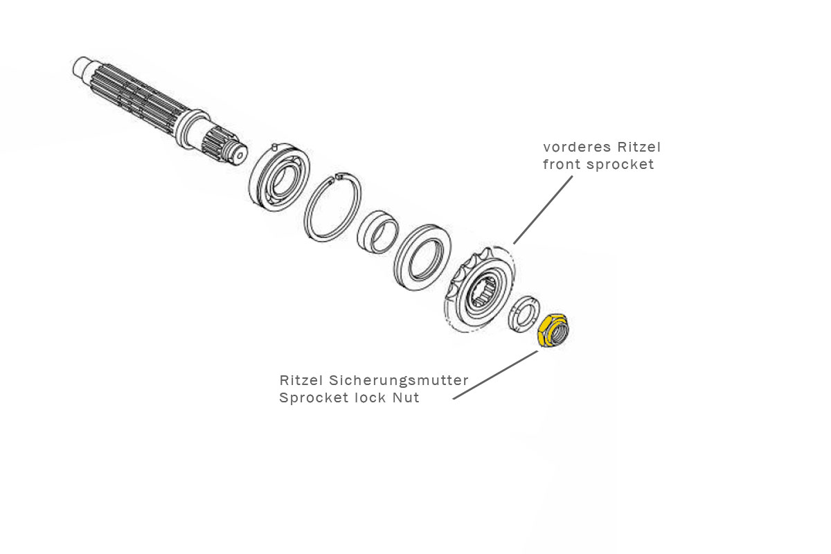 The lock nut to secure the front sprocket on the axle. Should be exchanged each time after loosenig of the sprocket nut.