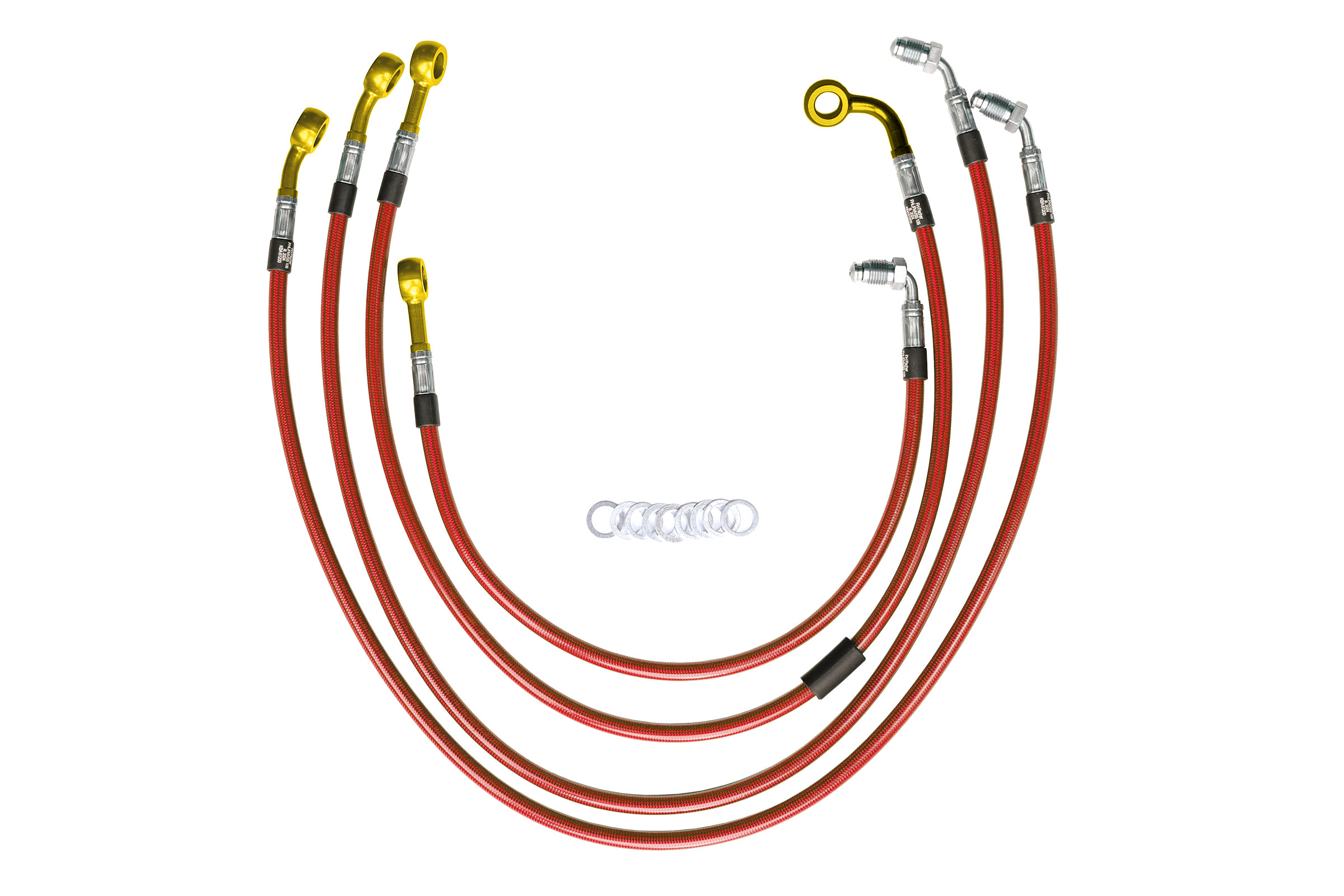 High grade steel braided brake line set to use a high fender with the Yamaha Tenere 700.
