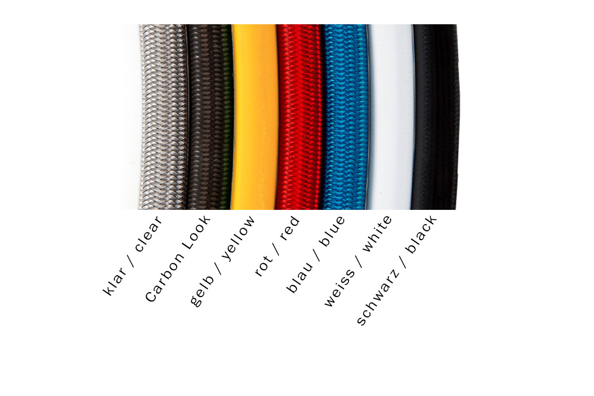 Our Stahlflex brake lines provide increased safety feature during the braking process, as steel brake lines. The steel braided lines, in comparison to standard brake lines - do not expand even in heat and therefore respond quicker and more directly. Especially in extreme situations, this steel flex brake lines offer the decisive advantage during the braking process. In addition, our brake lines are practically indestructible. Once a steel braided brake line have been mounted, you never have to change this again.