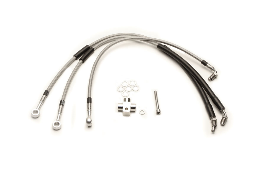 Exact pressure point, "eternally" working and nearly indestructable, these are the most important features of the steel braided brake hoses which have been tested a thousand times. In addition to the improved brake hose, the small hand power adds to the security. Delivery including TÜV-Certificate (ABE)!