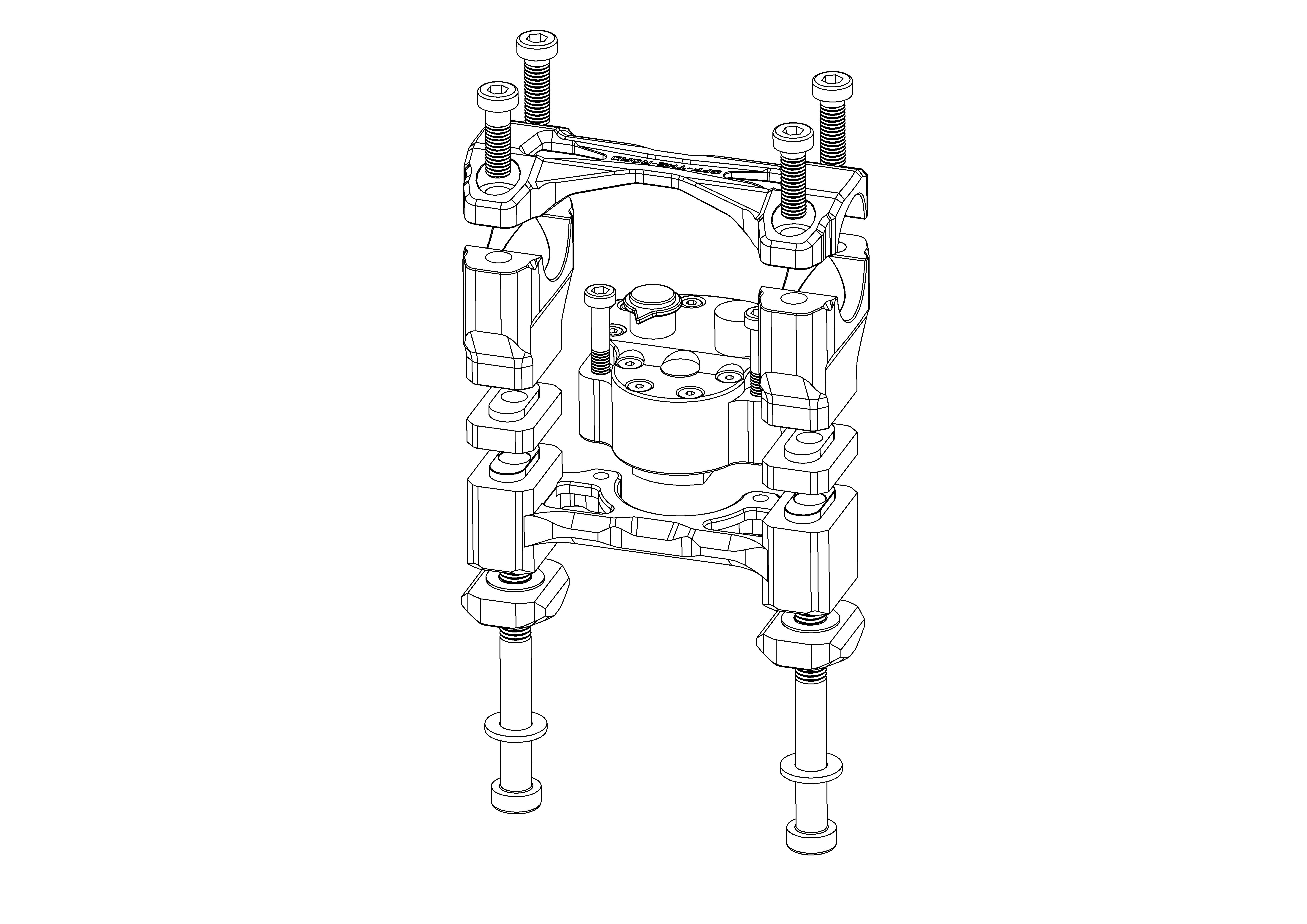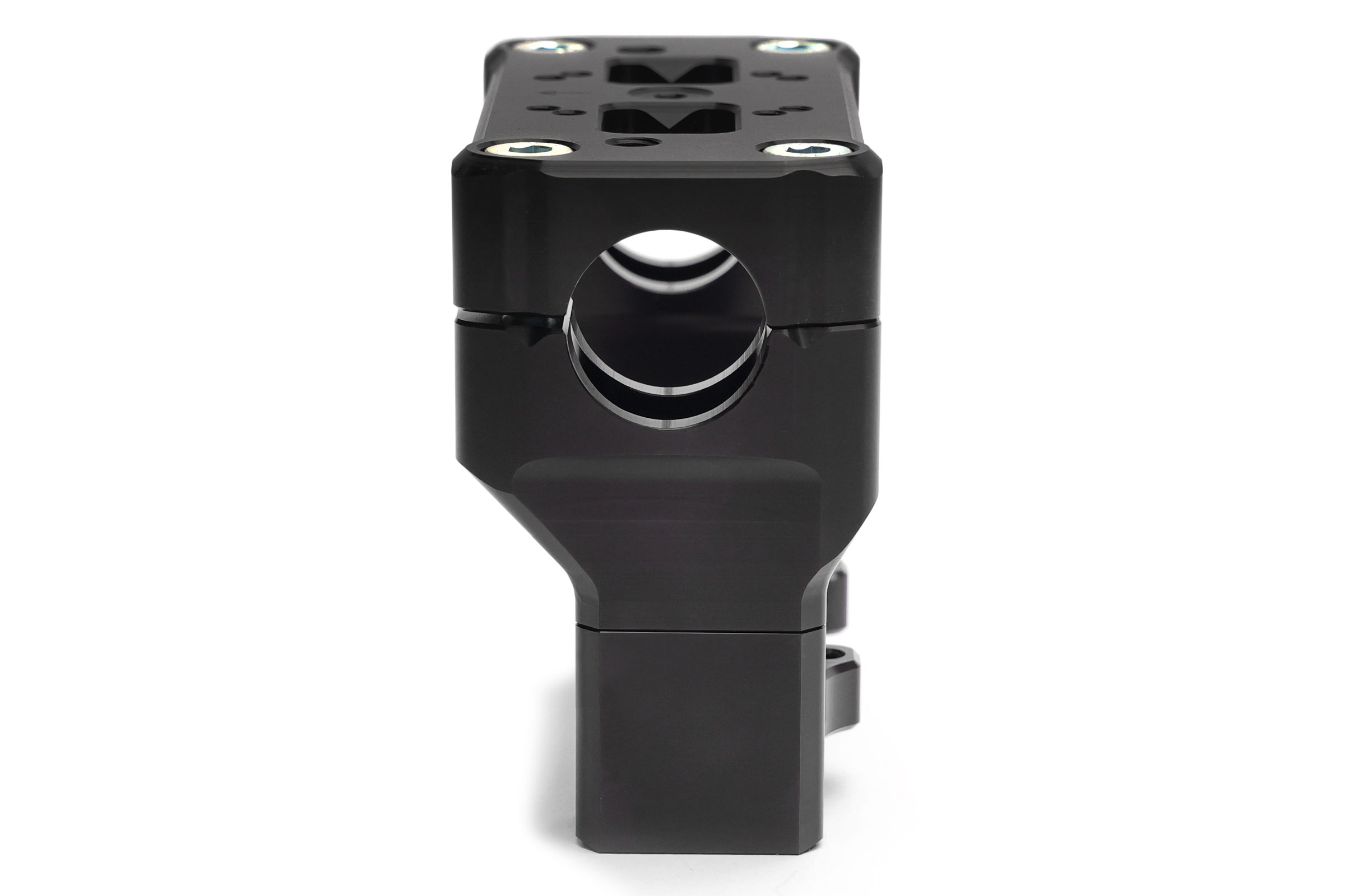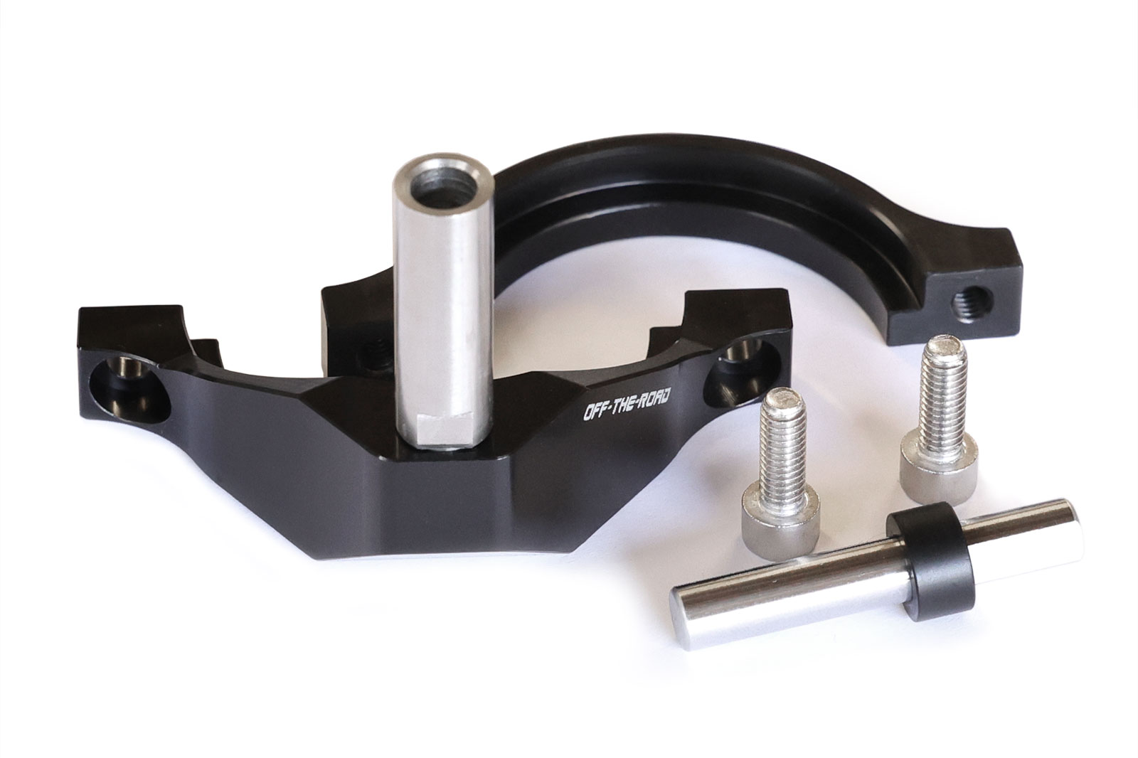 - OTR milled 4-piece handlebar clamp set with steering damper mount, black anodized