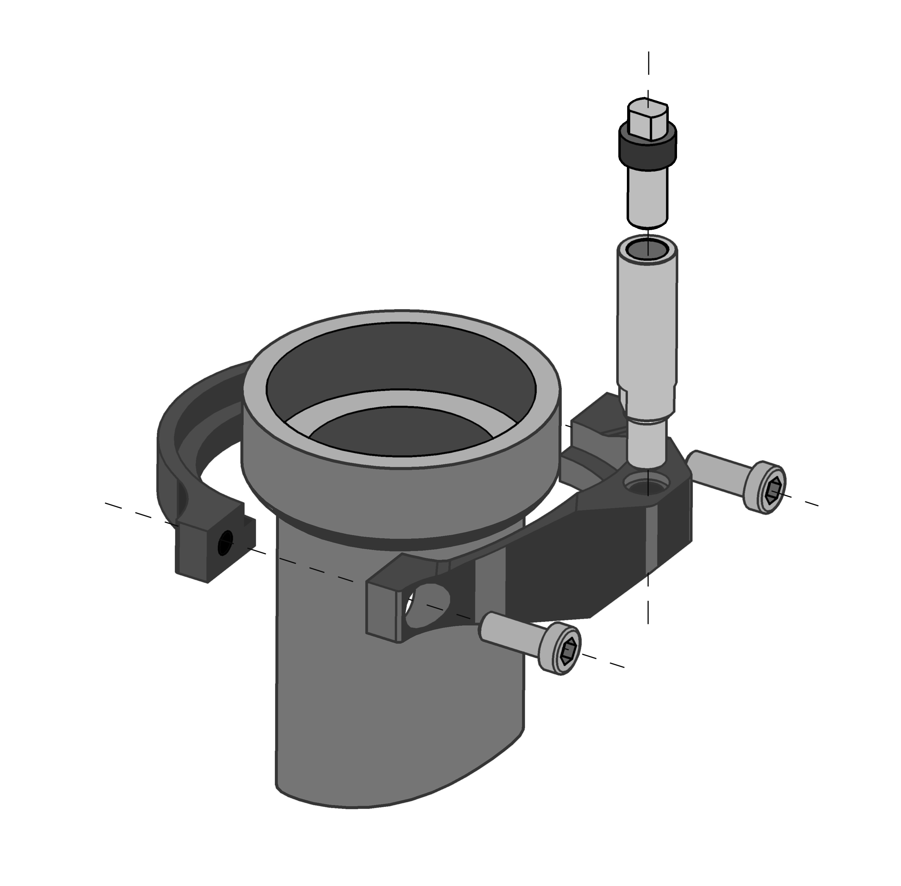 The surface of all components is anodised black for protection.