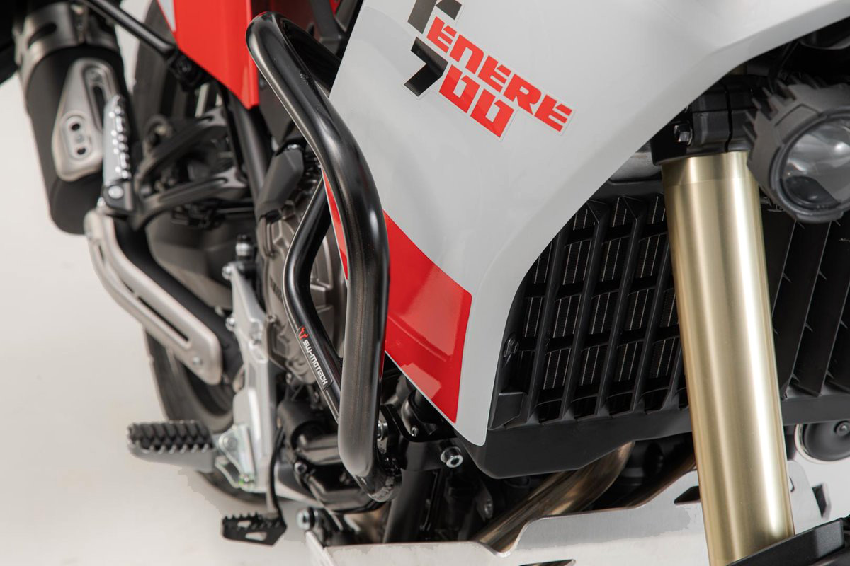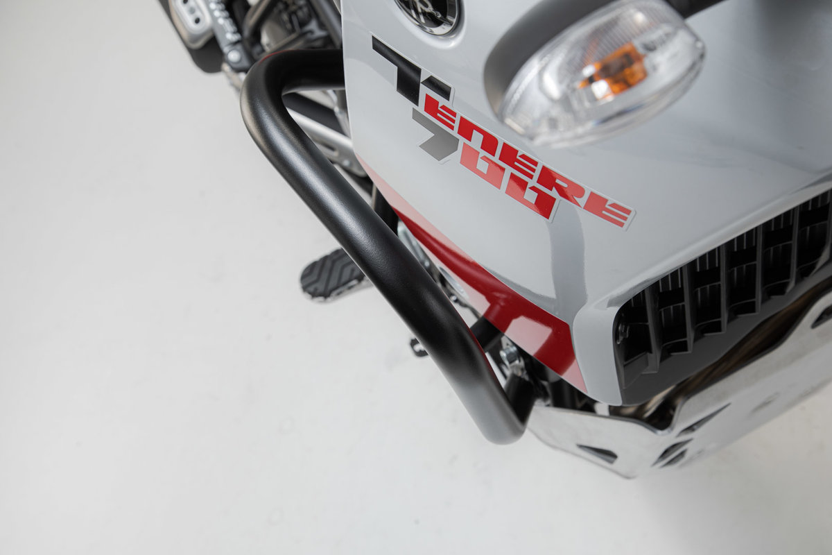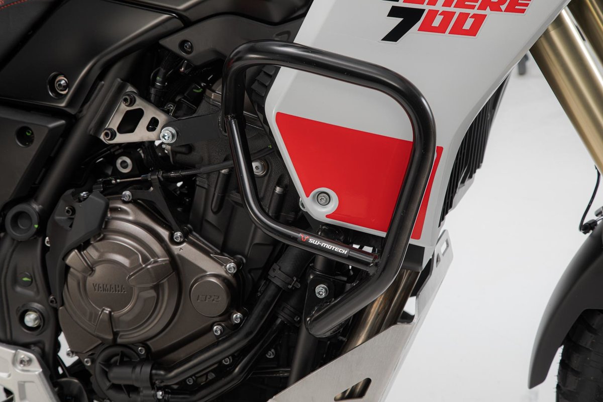 SW-Motech Crash bar enlargement Yamaha Tenere 700 This upper crash bars are the perfect add-on for the SW-Motech engine crash bars Yamaha Tenere 700. They will help to protect the upper fairing and tank. The bars are fixed to the lower crash bars at four points and additionaly at the front frame, so the whole construction is very strong. You can use this upper crash bars only in combination with SW-Motech engine crash bars. · very strong, CNC bend · Reliable protection for tank and fairing · black powder coated · 4 fixing points to the lower crash bars · Tube diameter 22mm · delivered with all needed parts Included: · 2 upper crash bars · Mounting material · Mounting instruction Fits all: Yamaha Tenere 700 2019 onwards Yamaha Tenere 700 Rally 2020 onwards Yamaha Tenere 700 Extreme 2023 onwards Yamaha Tenere 700 Explore 2023 onwards Features: · Just to use in combination with SW-MOTECH crashbar SBl-SW-T700 / SBL.06.799.10000/B. · See accessories