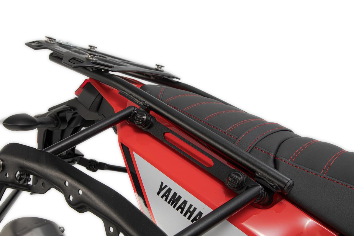 Ready for big adventures: The SW-Motech ADVENTURE-RACK impresses with its extreme durability and function-oriented shape. More than 15 years of experience in the production of racks and feedback from customers and test drivers went into the development of this aluminum rack. Material thickness, weight and geometry have been optimized for demanding tours and off-road use. Bike-specific attachment elements guarantee best fit and a simple attachment to the original attachment points. Designed specifically for touring bikes, large street and sport touring bikes, the ADVENTURE-RACK has a large storage surface. Numerous large lashing eyes give tail bags a secure hold. The functional bores accept adapter kits to attach top cases from SW-MOTECH, Givi, Krauser and Shad or SysBags. The luggage carrier was tested under rough conditions in the lab and on the road. A certified institute has confirmed its durability. The ADVENTURE-RACK carries your luggage to the end of the world, or wherever you want to go. Features Extra durable luggage rack for long tours on and off the road Selected production procedure and optimized design give the ADVENTURE-RACK an extra helping of stability Its extreme durability during vibrations, impacts and high weight was tested in the lab and off-road under harshest conditions Many functional bores: The adapter kits for TRAX top cases, SysBag15/30 bags with adapter plates are sold separately We also offer adapter kits for top cases from Givi, Krauser and Shad Easy lashing of luggage to the numerous large eyes, 25 mm closures can also be threaded through Particularly generous storage surface Simple assembly to original attachment points with bike-specific attachment components Made of low-weight and durable 4 mm aluminium alloy Effective corrosion protection from black powder coating Material: Aluminum alloy Color: Black Surface: Powder coated fits with our OTR softluggage racks Included in delivery 1 ADVENTURE-RACK Luggage carrier Mounting material Mounting instructions Fits all: Yamaha Tenere 700 2025 onwards Yamaha Tenere 700 Rally 2025 onwards Yamaha Tenere 700 2019 - 2024 Yamaha Tenere 700 Rally Edition 2020 - 2024 Yamaha Tenere 700 Extreme 2023 - 2024 Yamaha Tenere 700 Explore 2023 - 2024 Yamaha Tenere 700 World Raid 2022 - 2024 Yamaha Tenere 700 World Rally 2023 - 2024