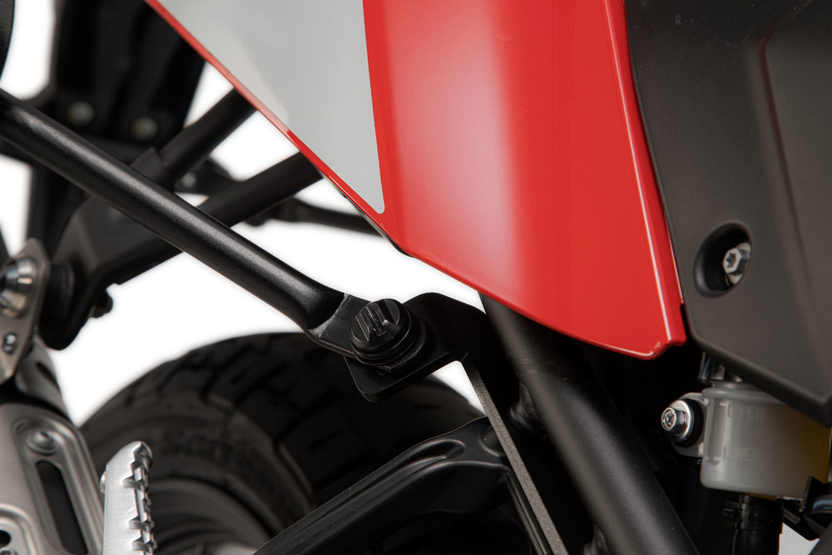 SW-Motech continues to use the trusted and popular QUICK-LOCK fasteners, which were also revised during redevelopment. You can still remove the quick release fasteners by turning a quarter turn with a regular screwdriver or our multitool. You can completely remove the carrier in a snap and only barely visible attachment elements remain on the bike. If you want to permanently attach the PRO side carrier to the bike, the new construction of the quick-release fastener is used.