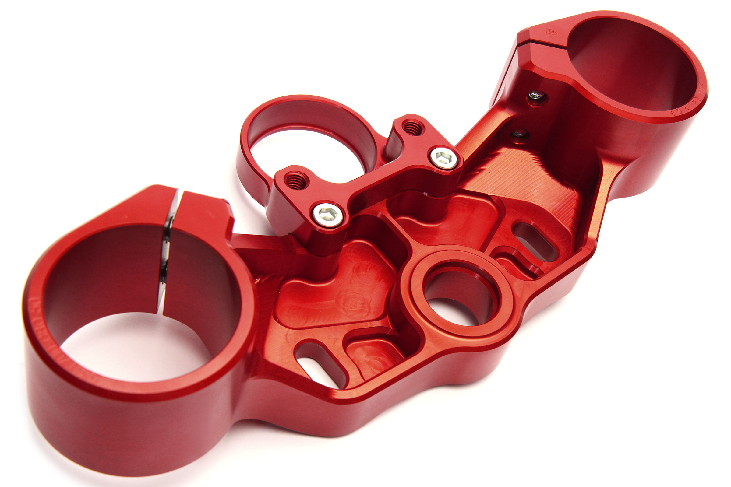 The upper clamps is machined with attachment for the steering lock and lower triple clamp with steering stops.