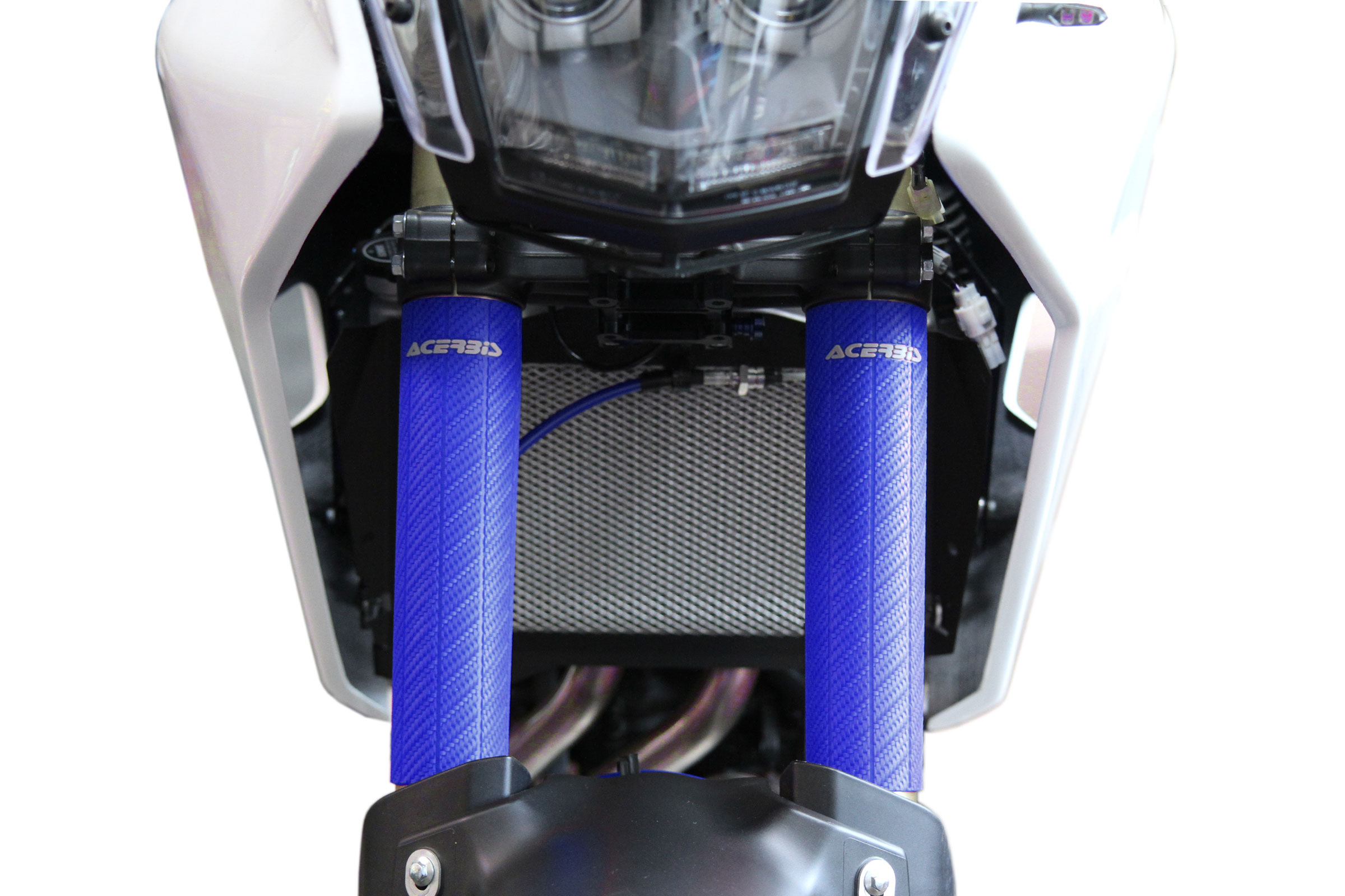 Ideal protection for the anodised fork tubes against flying stones, debis and in a fall over.