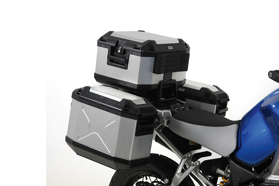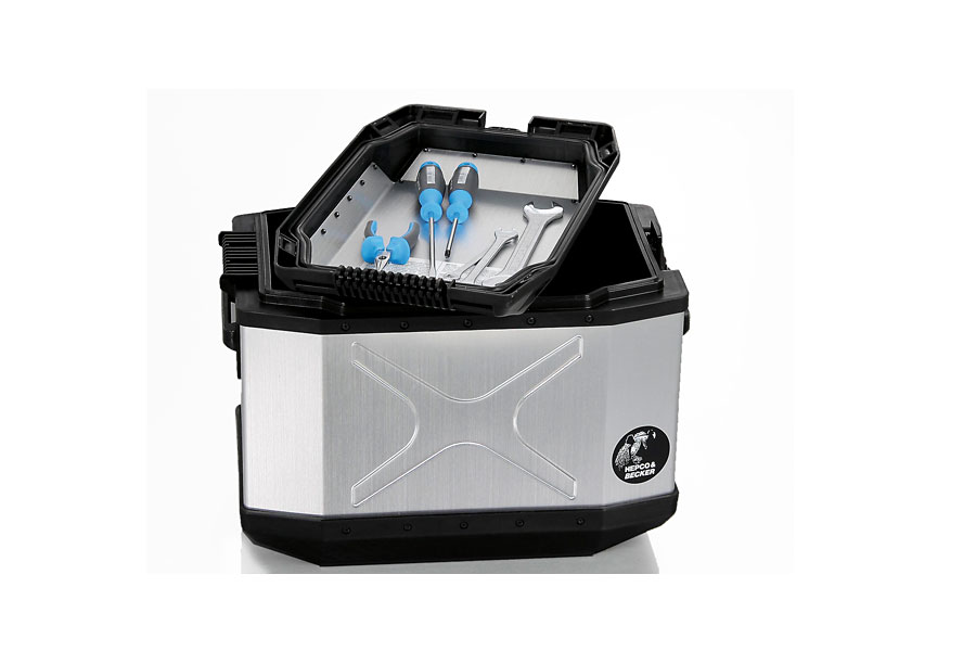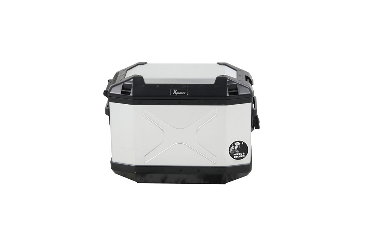 Die exklusiven und unverwüstlichen EXPLORER Topcase von HEPCO & BECKER. Gefertigt aus eloxiertem, 1,5mm starkem Aluminiumblech und hoch schlagzähen Kunststoffformteilen absorbiert der Koffer Schläge und Bodenkontakte. Durch das eloxierte Aluminium wir unschöner Aluminium Abrieb wirkungsvoll unterdrückt. Die Koffer haben abgeflachte Ecken und Kanten sowie eingelassene Zurrösen und stabile Tragegriffe. Der Deckel klappt 90° nach oben auf - somit ist eine einfache Beladung gewährleistet! Typische Hepco-Becker - die Koffer sind 100% wasserdicht! · Gefertigt aus eloxiertem 1,5mm starkem Aluminiumblech · hochschlagfeste Kunststoffformteile absorbieren Schläge und Bodenkontakte · Sillberfarben eloxiert - kein Aluminiumabrieb · Abgerundete Stoßkanten, eingelassene Verzurrösen · Stabile Metallschlösser mit Zylinderschließungen, integrierte Tragegriffe · Top-Lader - Deckel 90° aufklappbar · Absolut wasserdicht · Koffer und Topcase gleichschließend lieferbar · Schnellverschluß zur Montage am Kofferträger · Xplorer Topcase 45 passend für Integralhelme · Verschiedenes Zubehör erhältlich · für Hepco-Becker Kofferträger oder SW-Motech Träger mit passendem Adapter · Farbe: silber eloxiert · Inhalt: 45 Liter : Gewicht: 4,8 kg · Masse BxHxT: 47 x 31 x 37,5 cm · inkl. Schlüssel und Zylinder · Zeitschrift MOTORRAD: Testsieger 2012