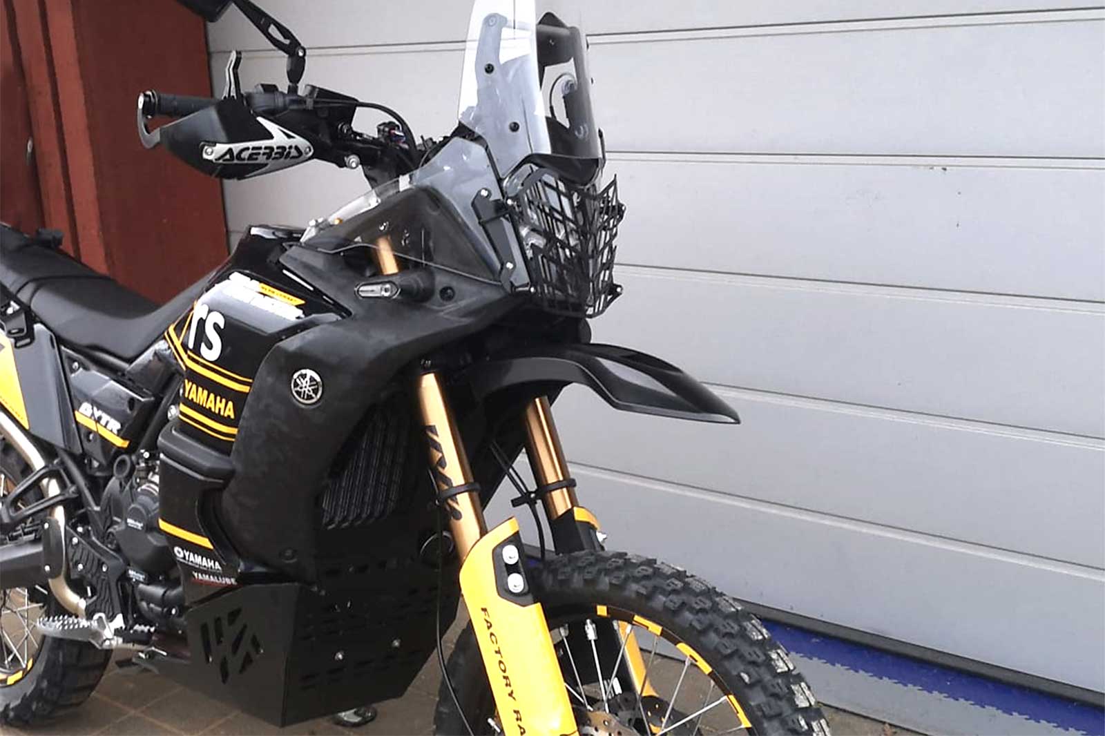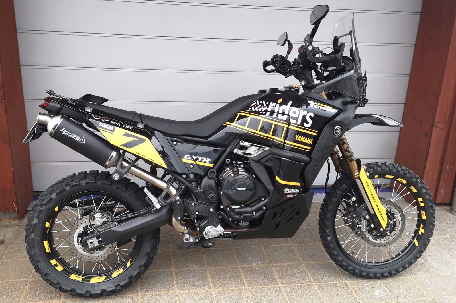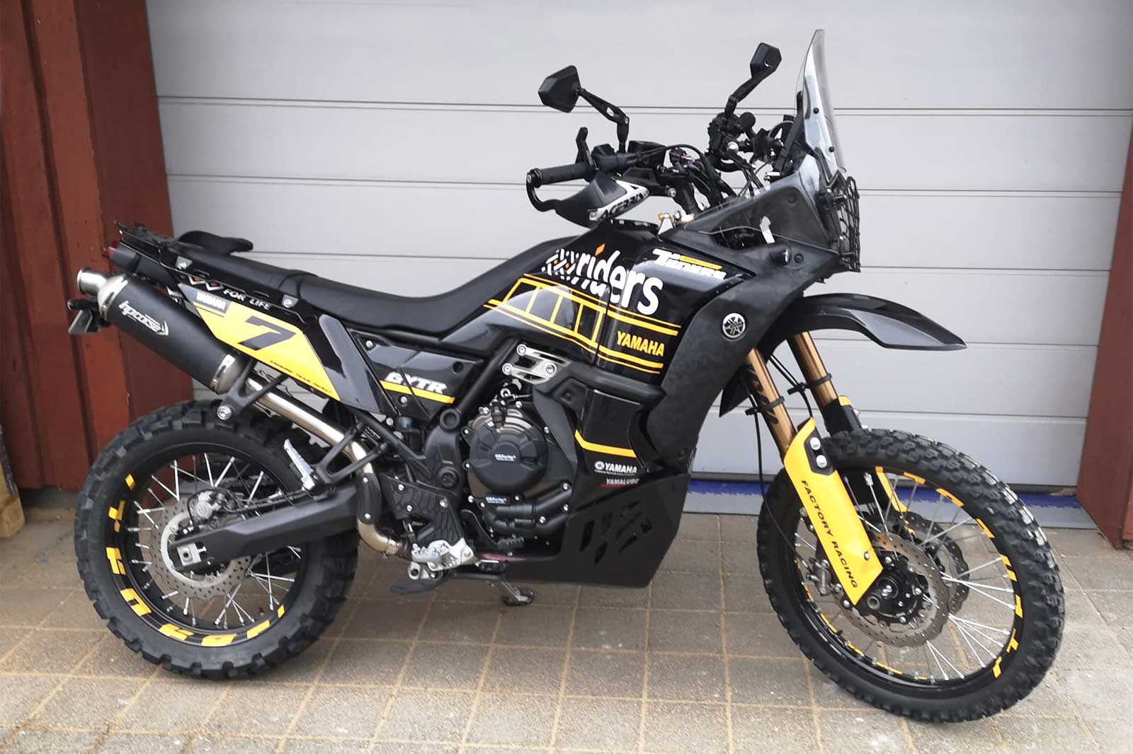 Spezielle 4-teilige Stahlflexbremsleitung für die Verwendung mit einem hohen Kotflügel und Adapter / Bremsleitungsverteiler an der Yamaha Tenere 700. Lieferung inkl. Fittingen aus Aluminium oder Edelstahl. Die neuen Bremsleitungen verlaufen dann jeweils am rechten bzw. linken Gabelholm nach unten zu den Bremssätteln. Die Leitung vom rechten zum linken Bremssattel entfällt. Für die Montage wird noch ein Verteiler / Splitter benötigt, welcher unter die untere Gabelbrücke geschraubt wird. Siehe Zubehör. Exakter Druckpunkt, "ewig" haltbar und nahezu unzerstörbar, das sind die wichtigsten Features der tausendfach erprobten Stahlflex Bremsleitungen. Neben der besseren Bremsleistung ist die geringe Handkraft auch ein Plus an Sicherheit. Stahlflex-Bremsleitungen gewähren ein erhöhtes Maß an Sicherheit beim Bremsvorgang, da sich Stahlflexleitungen - im Gegensatz zu herkömmlichen Bremsleitungen - auch bei größerer Hitze nicht ausdehnen und somit schneller und auch direkter ansprechen. Besonders in Extremsituationen bieten die Stahlflex-Bremsleitungen den entscheidenden Vorteil beim Bremsvorgang. Zudem sind unsere Bremsleitungen praktisch unverwüstlich. Wurden einmal Stahlflex-Bremsleitungen eingesetzt, so ist ein erneuter Austausch eigentlich nicht mehr notwendig. Wir empfehlen die Montage von sicherheitsrelevanten Bautelen wie Bremsleitungen in einer Fachwerkstatt durchführen zu lassen. Wir sind überzeugt von diesem Produkt und geben darauf 5 Jahre Garantie! Lieferumfang: 1 x Bremsleitung vom Bremszylinder zum ABS Moduator 1 x Bremsleitung vom ABS Modulator zum Verteiler (Verteiler nicht enthalten, siehe Zubehör) 1 x Bremsleitung vom Verteiler zur rechten Bremszange 1 x Bremsleitung vom Verteiler zur linken Bremszange Aluminium Dichtringe für die Bremsleitungen Features: Satz mit 4 Bremsleitungen und Dichtungen Anschlussgewinde M10x1 für die Montage eines hohen Kotflügels an der Tenere Yamaha 700 Stahlflex ummantelte PTFE Bremsleitung passend für Lenker / Erhöhungen bis etwa +30mm im Vergleich zum Original etwa 50% leichter als original Yamaha Leitungen höhere Bremsleistung genauerer Druckpunkt mit ABE, keine Eintragung nötig 4-teiliges Set inkl. Anschlüssen und Dichtringen inkl. Moto-Cross Verstärkung Schrumpfschlauch in diversen Farben Fertigung nach DIN ISO 9001 Erfüllt US Norm FMVSS 106 und DOT nahezu unbegrenzte Haltbarkeit 5 Jahre Garantie Zugfestigkeit über250 kp V2A Verpressung Berstdruck > 1000 bar minimaler Biegeradius 25 mm Betriebstemperatur -70°C - 260°C Resistent gegen alle Witterungseinflüsse Anschlüsse zur spannungsfreien Verlegung verdrehbar hochfeste eloxierte Aluminium oder Edelstahl Fittinge extrem langlebig, da gleichzeitig Schutz des Schlauches vor UV- Strahlung inkl. Aluminium Dichtringen Passend für alle: Yamaha Tenere 700 2019 - 2024 Yamaha Tenere 700 Rally Edition 2020 - 2024 Bitte beachten: Es wird ein Verteiler / Kotflügel Adapter für die Montage benötigt. Siehe Zubehör. Es wird mind. 1 Hohlschraube M10x1.25 für den rechten Bremssattel benötigt, da Yamaha dort ab Werk eine Doppel-Hohlschraube verbaut, die dann mit dem Kit nicht passt. Siehe Zubehör Auf Grund der vielfachen Kombinationsmöglichkeiten in der Farbauswahl, werden die Leitungen immer individuell auf Kundenwunsch angefertigt. Daher bitte eine saisonabhängige Zeit bis Versand von 1 bis zu 3 Werktagen einplanen