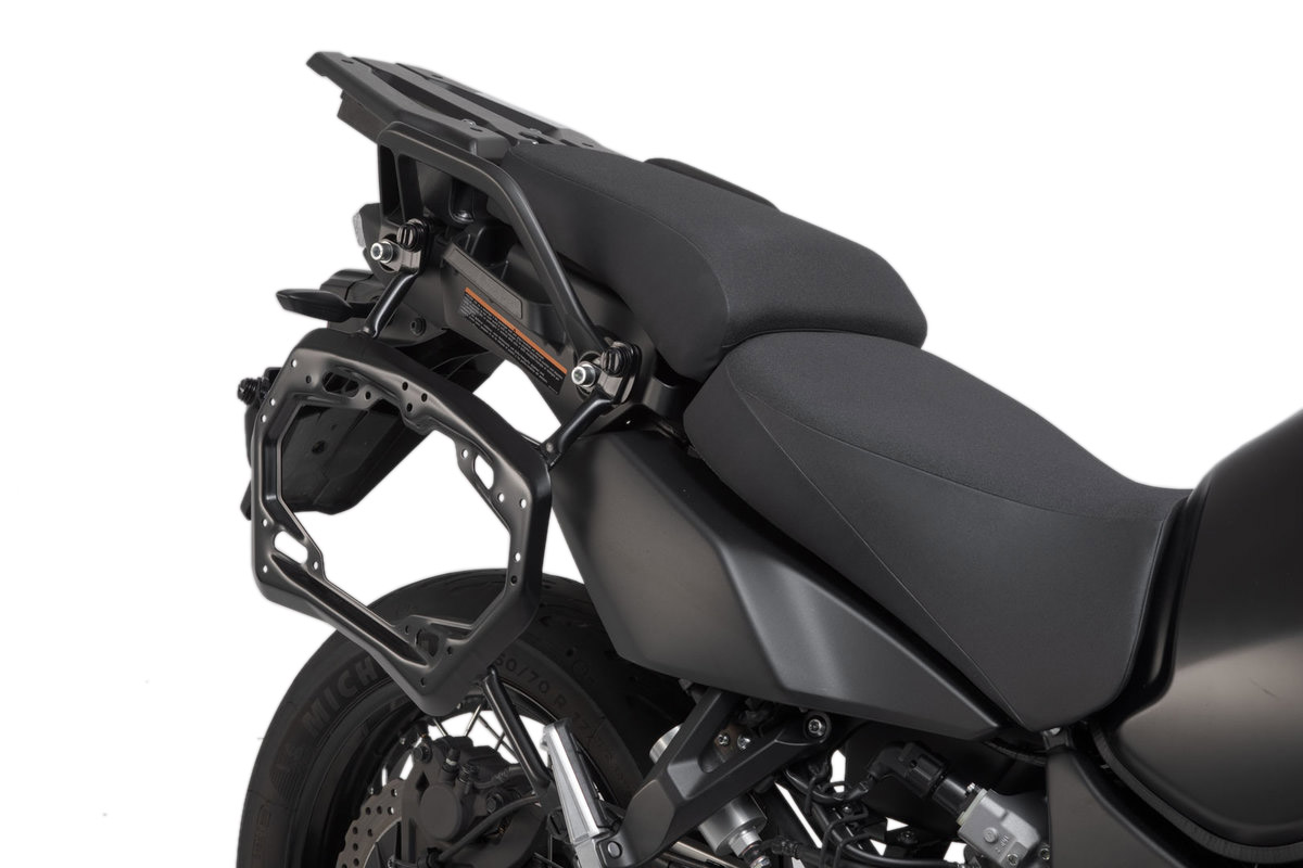 · QUICK-LOCK-System ermöglicht einen sekundenschnellen An- und Abbau des Seitenträgers über Schnellverschlüsse. Am Motorrad verbleiben nur unauffällige Befestigungspunkte.