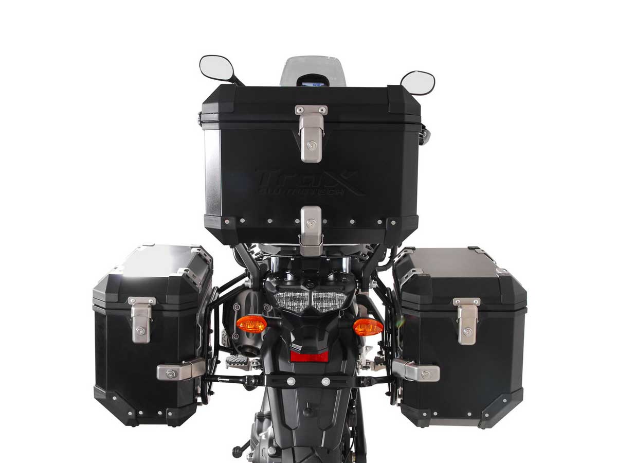Dieses Set ist das Rund-um-Sorglos-Paket für jede Tour. Die wasser- und staubdichten TRAX ADV Premium-Alukoffer, zwei Seitenkoffer und ein Topcase, bieten deinem Gepäck besten Schutz. Die modellspezifische Entwicklung des abnehmbaren EVO Kofferträgers und des ADVENTURE-RACK Gepäckträgers garantieren beste Passform und den sicheren Halt der Alukoffer. Die robusten TRAX ADV Alukoffer überzeugen durch Stabilität, Wasser- und Staubdichtigkeit, edle Optik, durchdachte Features und eine große Auswahl an Zubehör. Für noch mehr Stauraum enthält dieses Adventure-Set zwei TRAX M/L Zusatztaschen. Diese werden auf den Seitenkoffern verschlauft, sind wasserdicht und der Inhalt wird besonders schnell erreicht.