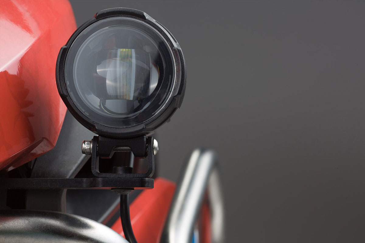Das eng gebündelte Licht der EVO Fernscheinwerfer hat eine besonders große Reichweite. Somit ist das Sichtfeld optimal ausgeleuchtet und die Sicherheit auf und abseits der Straße erhöht. Für die Entwicklung der neuen EVO Scheinwerfer hat sich SW-MOTECH einen starken Partner gesucht und vertraut auf das Know-How eines langjährigen Spitzenproduzenten aus dem Automotive-Bereich. Der Fokus der Neu-Entwicklung lag auf einer kompakten Form und der Erfüllung allerhöchster Qualitätsstandards: sowohl die EVO Nebelscheinwerfer als auch die EVO Fernscheinwerfer sind wasser- und staubdicht nach Schutzklasse IP69. Die nahezu verschleißfreien LEDs der Premium-Scheinwerfer sichern beste Sicht auf Jahre.