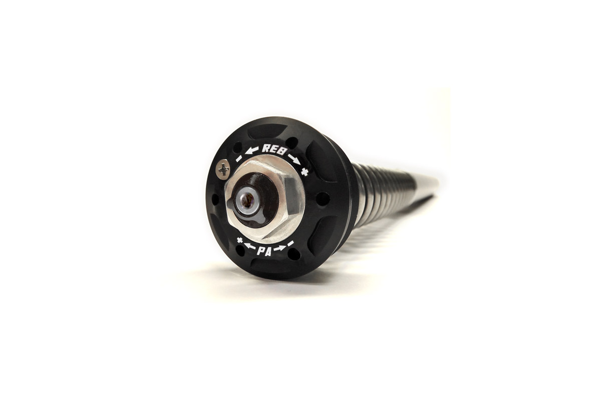 Das System verfügt über getrennte Verstellung von Zug- bzw. Druckstufe: Im linken Holm wird die Druckstufendämpfung eingestellt, während der rechte Holm die Zugstufendämpfung regelt.